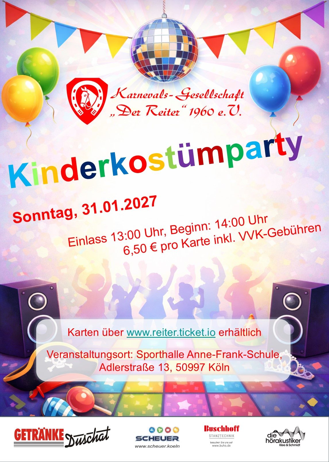 Am Sonntag den 31.01.2027 dürfen wir wieder jung und alt auf unserer legendären Kinderkostümpary begrüßen.