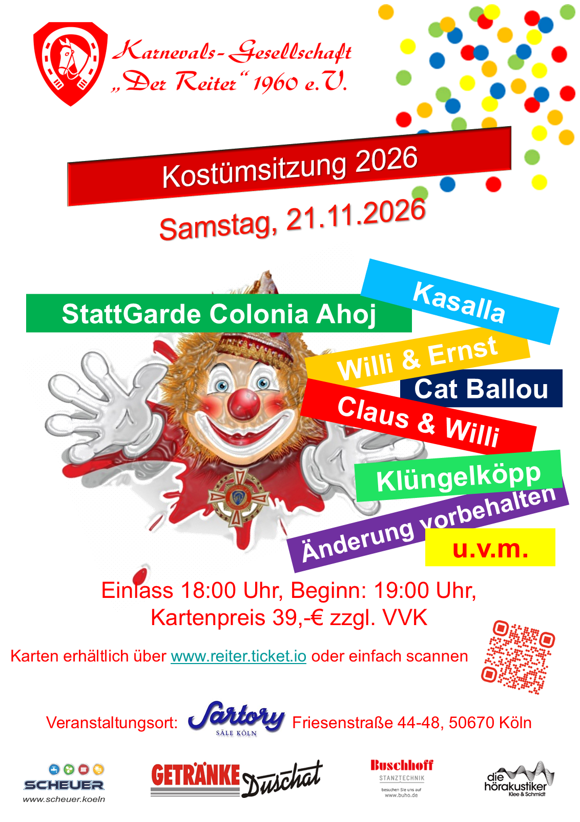 Am 21.11.2026 heißt es wieder: "Reiter jeck im Sartory".